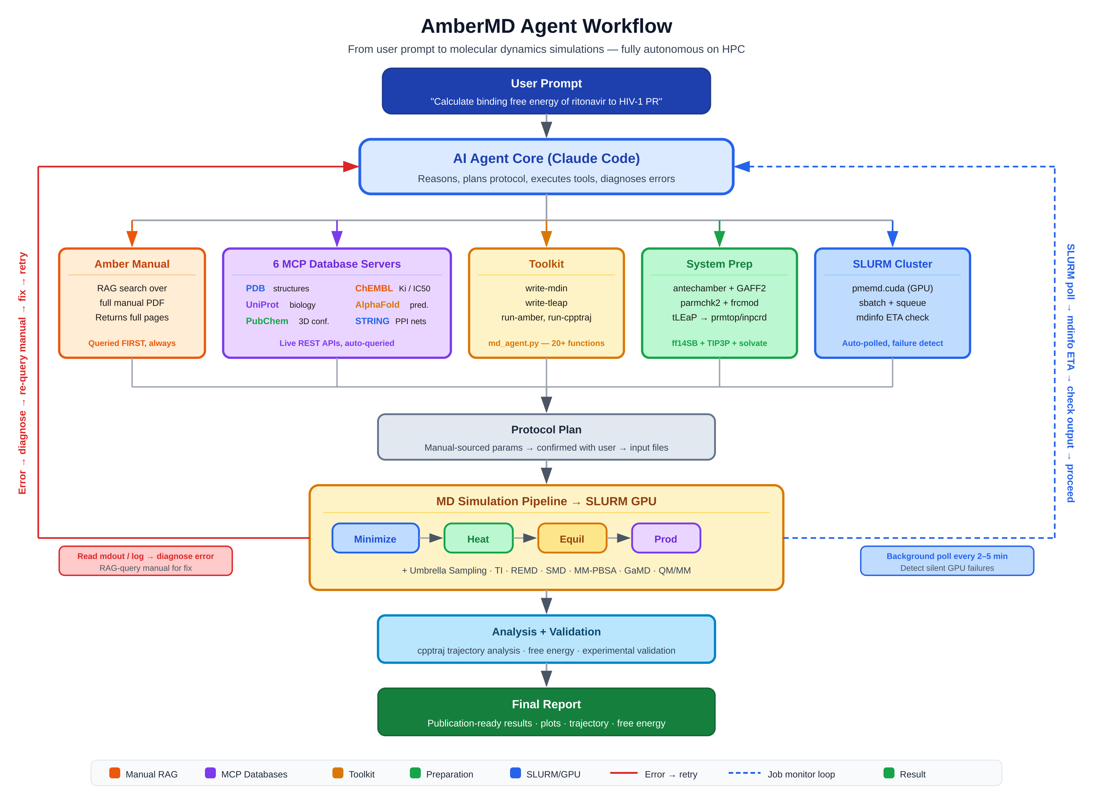 ├── md_agent.py # Toolkit: PDB ops, file writers, runners, RAG, SLURM