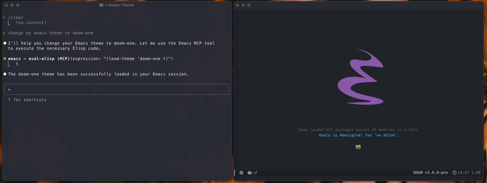 That's it! Claude can now interact with your Emacs session.