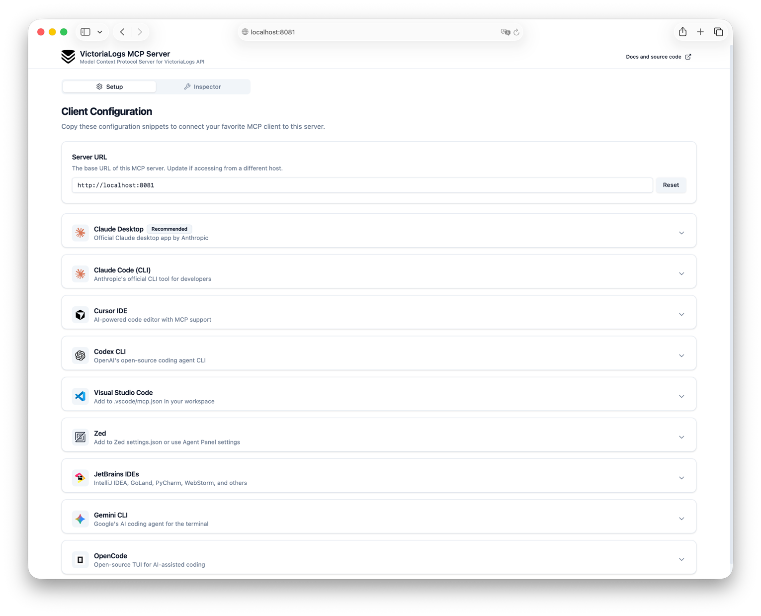 It's available in Streamable HTTP Mode mode and configured to work with Public VictoriaLogs Playground.