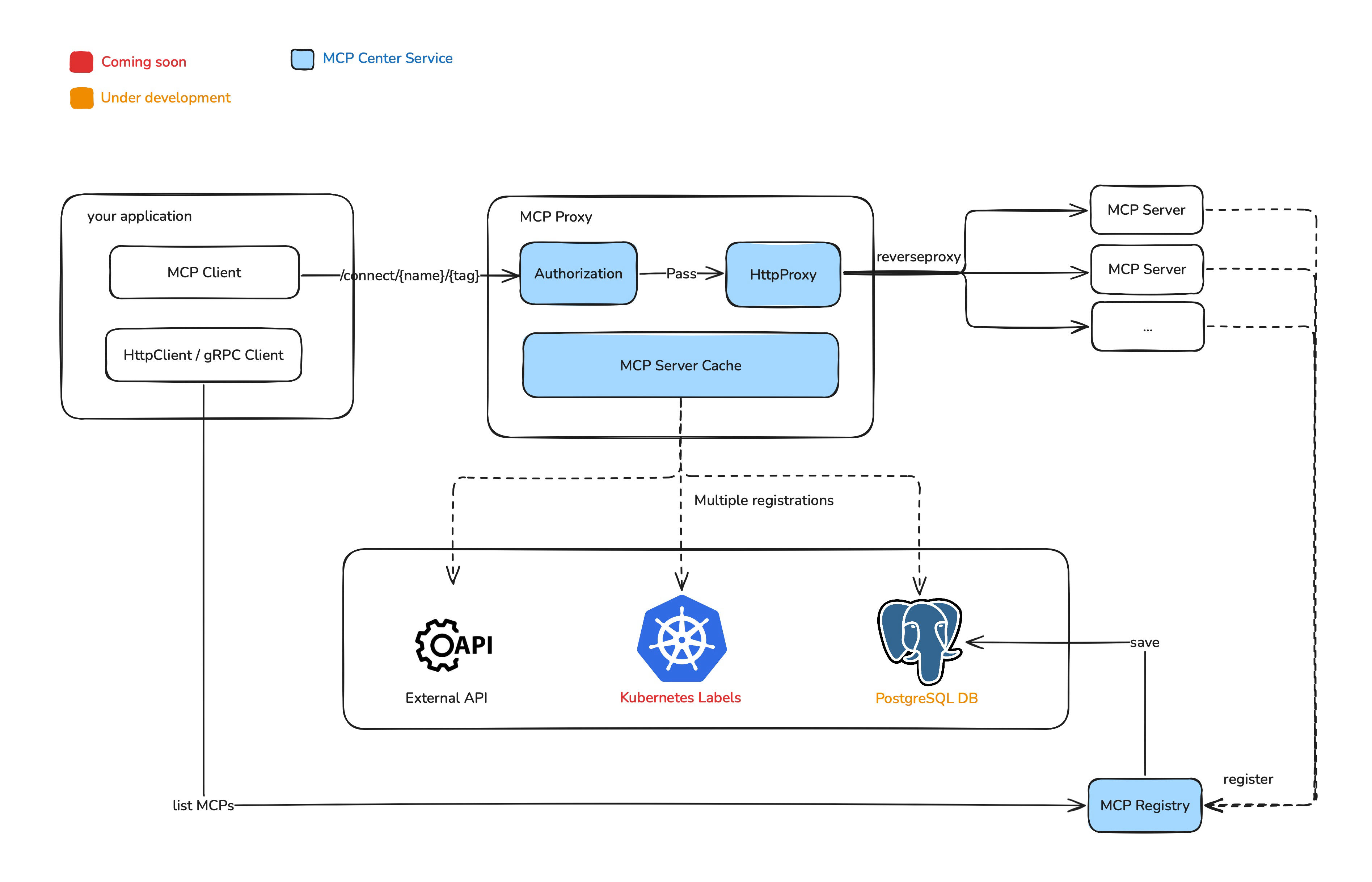 A centralized platform for managing and connecting MCP (Model Context Protocol) servers. MCP Center provides a high-performance proxy service that enables seamless communication between MCP clients and multiple MCP servers.