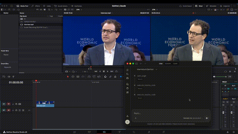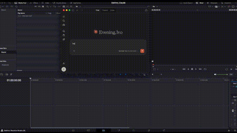 Connect DaVinci Resolve Studio to Claude AI through the Model Context Protocol (MCP)