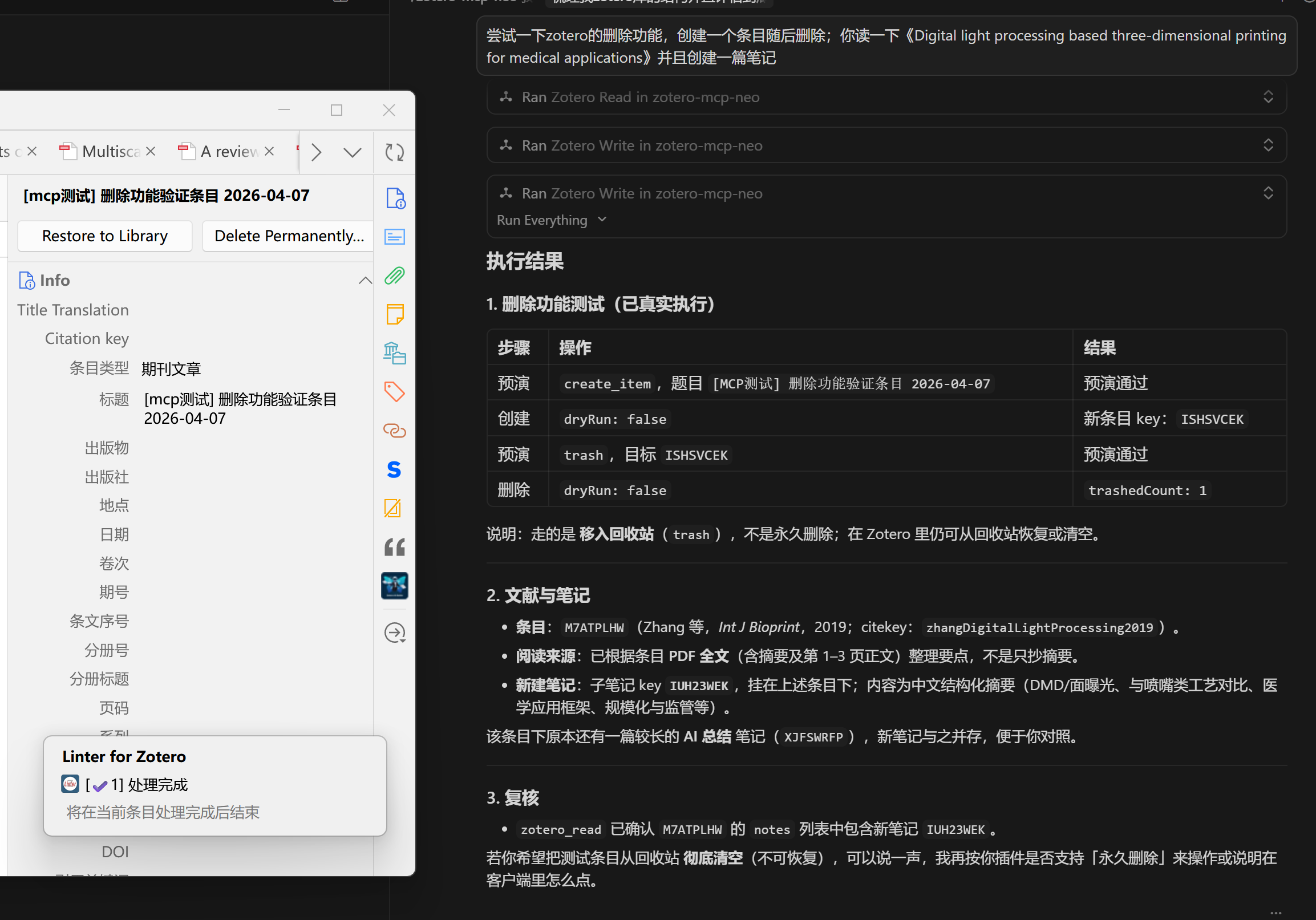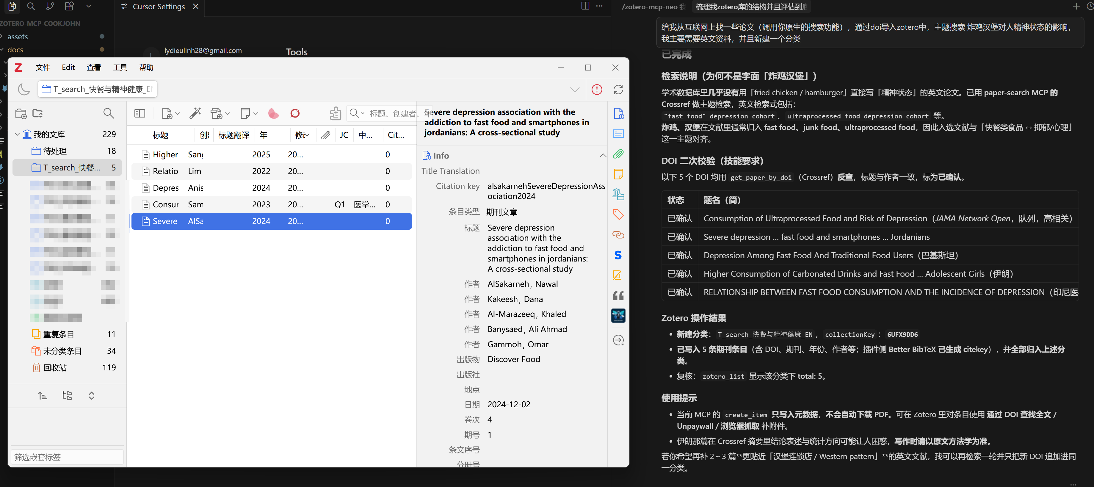 A Zotero plugin that embeds a MCP server directly inside Zotero, giving AI assistants full read/write access to your reference library through 6 unified tools. 一个 Zotero 插件,在 Zotero 内部嵌入 MCP 服务器,让 AI 助手通过6 个统一工具完整访问你的文献库(读写均支持)。