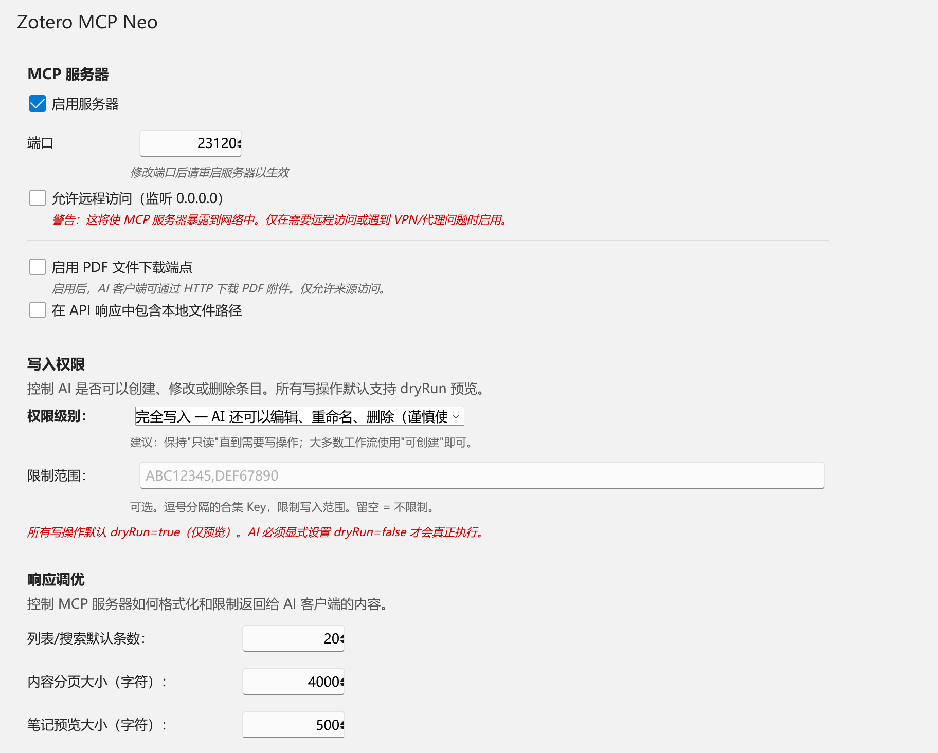 Zotero → Edit → Settings → Zotero MCP Neo: